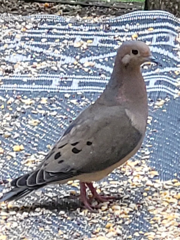 My bird friends have come and gone. But they always come back! There are 4 to 12 of these Mourning Doves who come. 4 or 5 sometimes. I purchased peanuts for the birds. Seems I should shell them, unshelled was not popular. However, today the Red Bellied Woodpecker returned for 3! The Titmouse also took 3. The cardinal 1 or 2. A Hay came prior to putting them out. I hear him but he has not come. Ready for them with their seed and water. More sunflower seeds should be here soon. They love these. And so does the turkey. I put some peanuts on the ground. The night time clean up crew? I think a bunny. He or she makes off with the suet if I do not bring it in. The bunny is a bit skittish for day time ventures as that lady moves! Off I go! The Cowbirds are interesting, they make a blip, blip noise. What ever it means, it seems to be good commentary. The chipmunk should like the peanuts too. Just a little feller. His cheeks get packed full. I wonder where he stores it, or how they do. There has been a Downy Woodpecker.