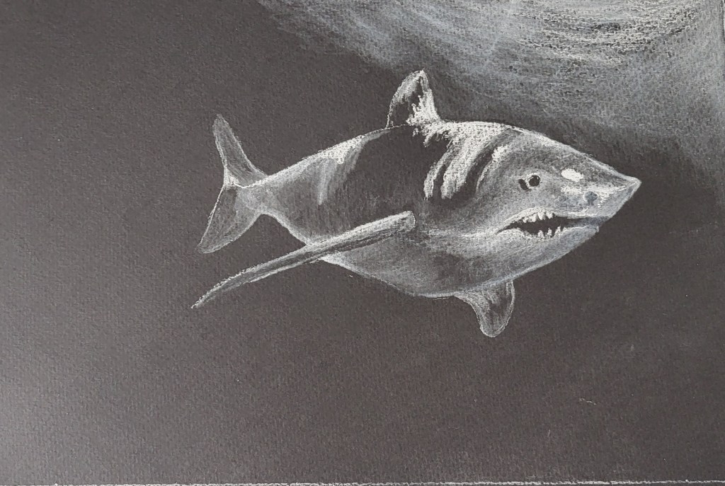Now to finish this fellow. Add color, more shark like teeth….