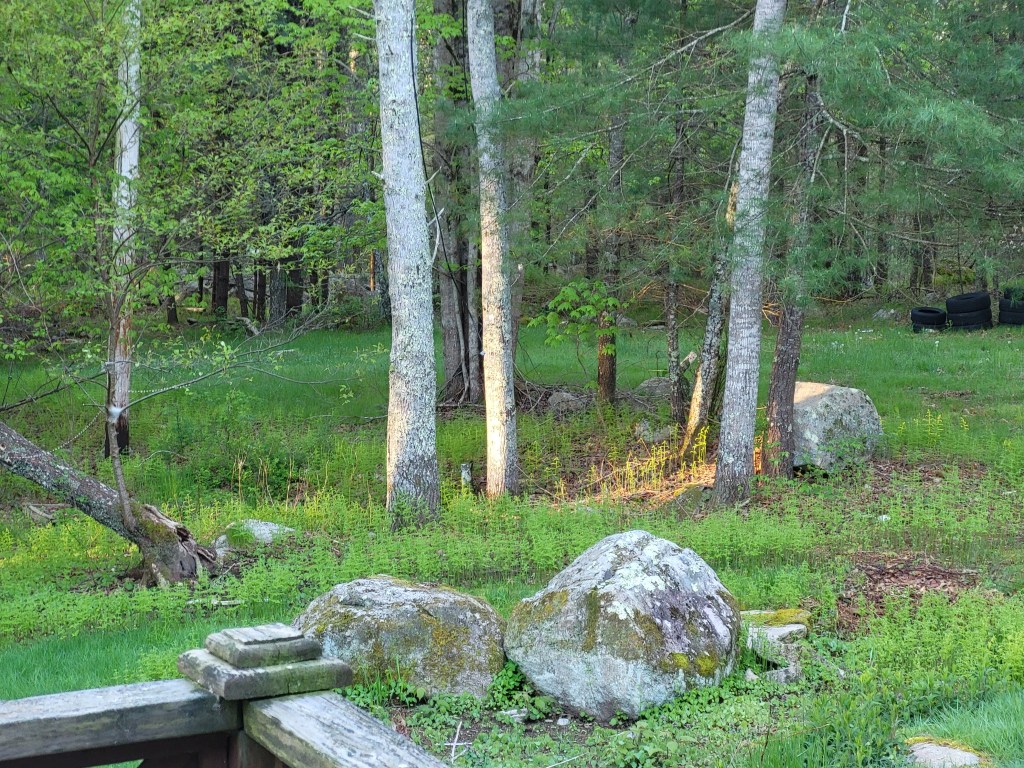 the view from my deck. I am studying the way the sunlight falls on this little field. Painting it I will get to know it.