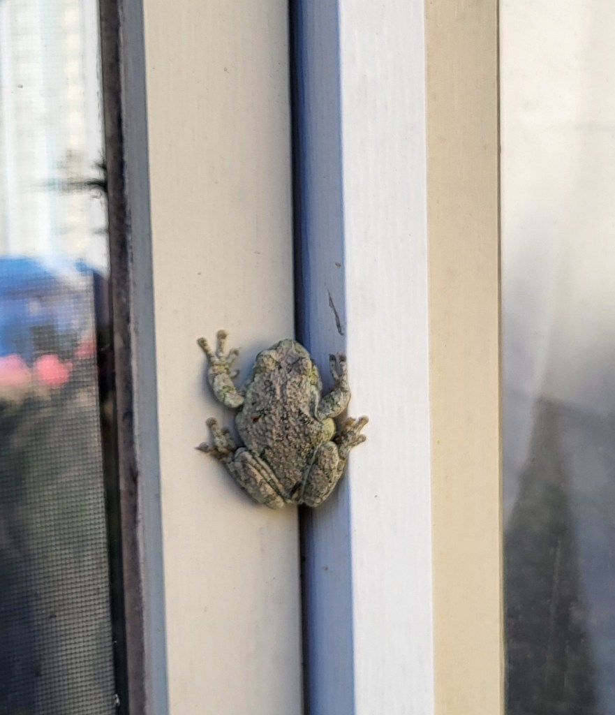 Today’s guest. He I think tries hard to get tge attention he wants. Always outside my door, making his plans for the day.
