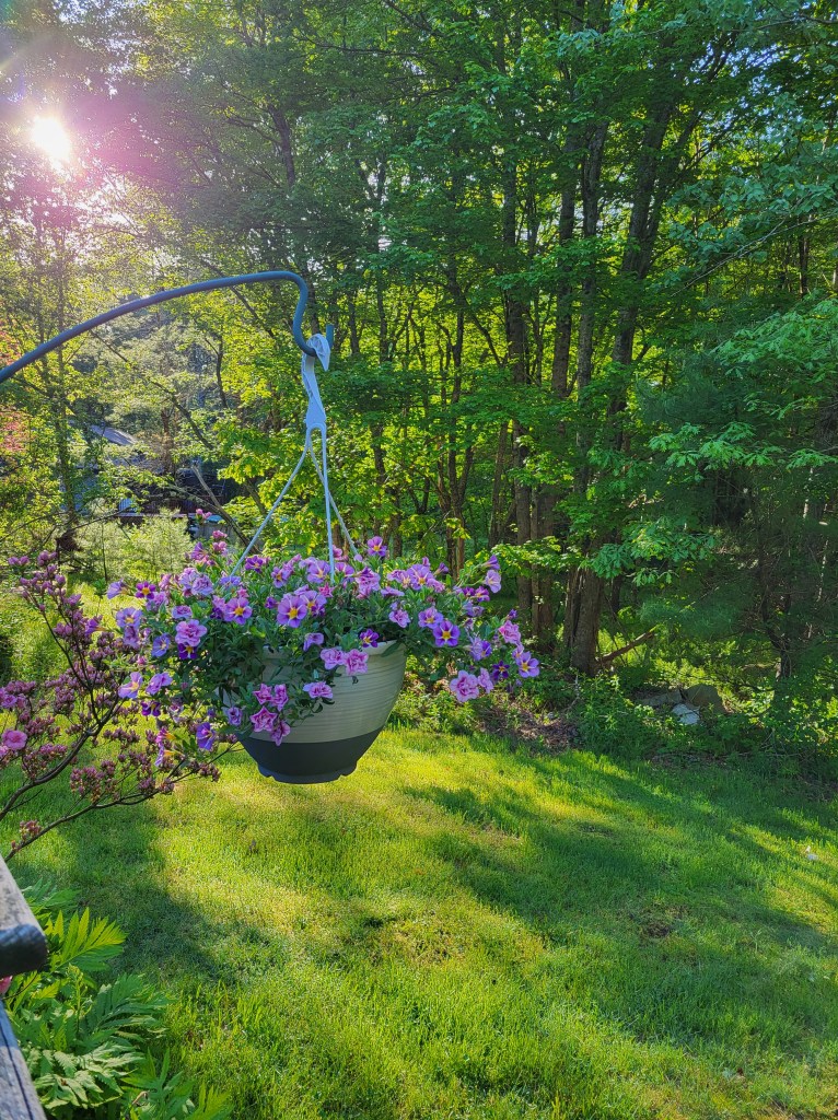 Early morning sun. Love it! The red bellied woodpecker has come for his peanuts, the other birds for seeds. I am feeding a little less, scattering it wider as I will be away for three weeks at camp with kids and want them to return to their normal ways of feeding from the wild in the mix. The chipmunks, little hoarders, they are busy all day long filling themselves and so I am not sure who is getting what. I think a squirrel proof feeder is necessary now there are three of the chipmunks and 2 squirrels who have found the feeding station. Jacobie will be gone a week and can feed them for me when she is home. So, some problem solving needs to be done.