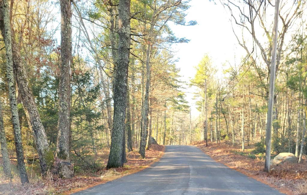 The road home. Long, hilly, treelined, full of boulders and winding. Here and there Mountain Laural making it parklike when in bloom.